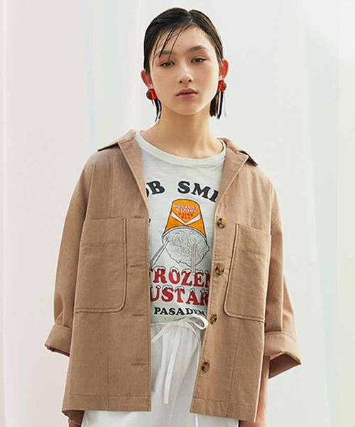 懐かしさが新鮮 開衿シャツ風ライトジャケット 夏のワンツーコーデに合わせるだけで、きちんと感&こなれ感を足せるはおりもの。 開衿シャツ風のデザインで、堅い印象になりません。 ゆったりしたサイズ感とワイドな袖で、風通しよく。 大きなポケットや太番手のステッチ遣い、マーブル調のボタンなど、おじいちゃんのシャツジャケットのように、どこか懐かしいデザイン。 着るほどに風合いが増す素材も魅力です。