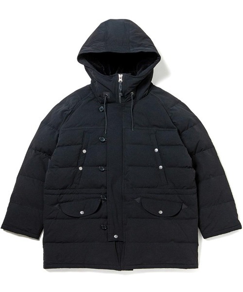 しっかりとした生地感のレイヤー素材を使用したダウンジャケットです。ワイド気味のシルエットでトレンド感のある仕上がりになっています。見た目はシンプルな仕様ながらもメインポケットの横のコンシールポケットや収納力が豊富な内ポケット等機能性を重視したアイテムとなっています。中に入れたダウンは70/30の割合で、保温性と軽さを両立させた配合になっています。