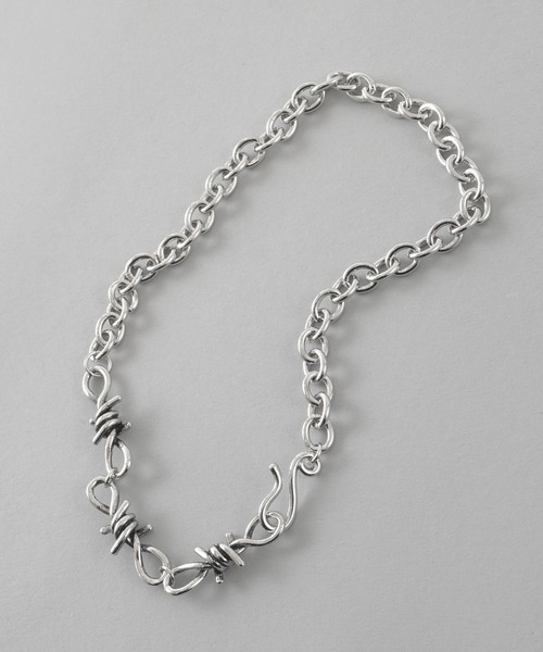 有刺鉄線モチーフ×フックの組み合わせが個性的なネックレス。ユニセックスで使いやすいデザインでプレゼントにもおすすめです。※先端は丸めていますが強く押し当てないように気を付けてください。仕様:ワイヤーデザイン、フック留め具《お気に入り登録》・「商品のお気に入り登録」で再入荷通知や、ラスト1点の通知、セール通知も受け取ることができます。・「ブランドのお気に入り登録」で新商品や再入荷など、いち早くブランドのお得な情報を受け取ることができます。【Figments/フィグメンツ】ファッション、音楽、カルチャー。時代とともに変化を楽しむ者たちに向けた、Realityを覆し、常識を壊すユニセックスファッションブランド。
