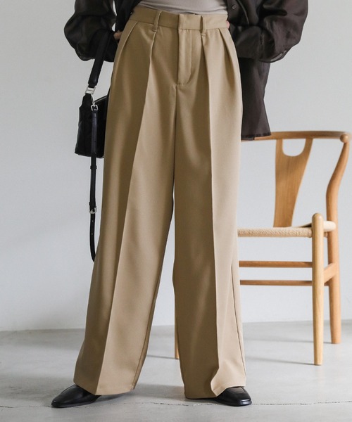 -point- & -styling- 履くだけで美脚が叶うダブルタックワイドパンツ。 ワイドすぎない絶妙なシルエットで オン・オフどちらにも対応できる万能アイテムです。 程よくハリがあり、脚のラインを拾いにくいのも嬉しいポイント◎ ご自宅で手洗いが可能です。 コンパクトなトップスでスマートな着こなしはもちろん、 ラフにTシャツ合わせもおすすです。 ハイウエストセンタープレスベーシックパンツ ---------------------------- 素材 (本体)ポリエステル80%・レーヨン17%・アクリル3% (別布)ポリエステル100% ---------------------------- 伸縮性 なし 生地の厚さ ★★★☆☆ 裏地 なし ---------------------------- ※アイボリーは透け感があるため、ペチコートの着用をおすすめします。 ---------------------------- ※モニター・環境等により実際の商品と多少色味が異なって表示される場合がございます。 予めご了承をお願いいたします。 ======================= ■袋梱包の為、染料による特有の匂いが抜けきれず、匂いがする場合がございますが不良品にはあたりません。 上記注意点での返品、交換はお断りします。ご了承の上お買い求めくださいませ。 ■本製品は生産過程におきまして色味、サイズ感等若干の誤差が出る場合がございます。予めご了承くださいませ。 ======================= 【お買いものをお楽しみいただく為に!】 ▼商品のお気に入り登録 完売カラーの再入荷通知や、ラスト1点の通知、セールの通知も受け取ることができます。 ▼ブランドのお気に入り登録 新商品や再入荷など、いち早くブランドのお得な情報を受け取ることができます!