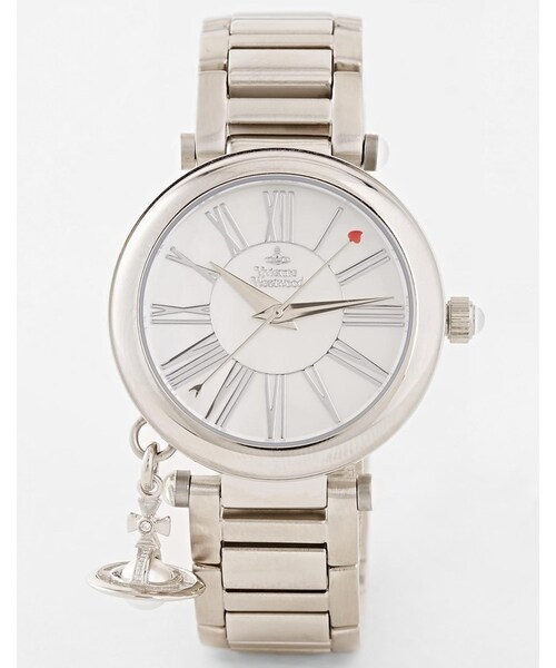 Watch by Vivienne Westwood Silver-tone finish Branded round face Triple hand movement Roman numeral indices Single side stem Orb charm pendant Bracelet strap Jewelry clasp fastening 5ATM: water resistant to 50 metres (160 feet)