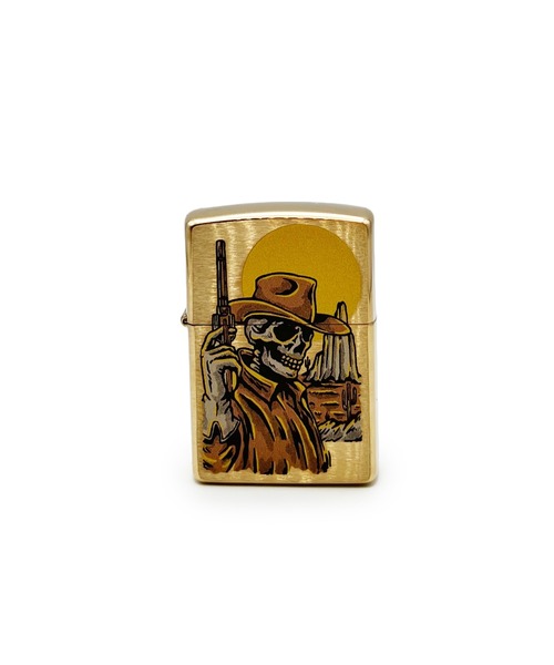 ZIPPO ジッポ 48519 COWBOY SKULL DESIGN ◆MADE IN USAの老舗ライターブランド”ZIPPO”の登場!!◆ ”COWBOY”と”SKULL ”を組み合わせたプリントZIPPOライター。 ネクロマンスのながらもレトロでアイコニックなアイテムに仕上がっております。 ゴールドのケースも使い込むたびに味わい深くなってくれ、コレクションとしてもオススメです。 オイル(別売)を注入し使用するライターです。 雨や風に強くフリント(石)やウィック(紐)を交換することで永続的に使用でき環境にも優しいライターです。 【ブランドコンセプト】 ZIPPOの歴史は1930年代初頭のペンシルバニア州ではじまります。創業者のジョージ・G・ブレイズデルによって生みだされたライターは発売以来、基本構造にほとんど変化なく作られ、現在でも世界中の人たちに愛されるオイルライターです。また、ほとんどの商品が使い捨て、あるいは限られた保証で入手できますがZIPPOは依然として名高い生涯保証に支えられています。 ※店頭及び屋外での撮影画像は、光の当たり具合で色味が違って見える場合があります。商品の色味は、スタジオ撮影の画像をご参照ください。