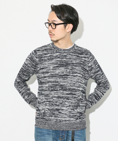 スラブ調の綿麻ニット。 麻特有の軽さ、通気性の良さと綿特有のしなやかさを合わせ持っており、スラブ糸を使用することで春夏らしい爽やかな風合いをもたせました。 これからロングシーズンでお召いただける1枚となっています。 店舗にてお問い合わせの際は、下記の品番をお申し付け下さい。 品番:DM14-3007