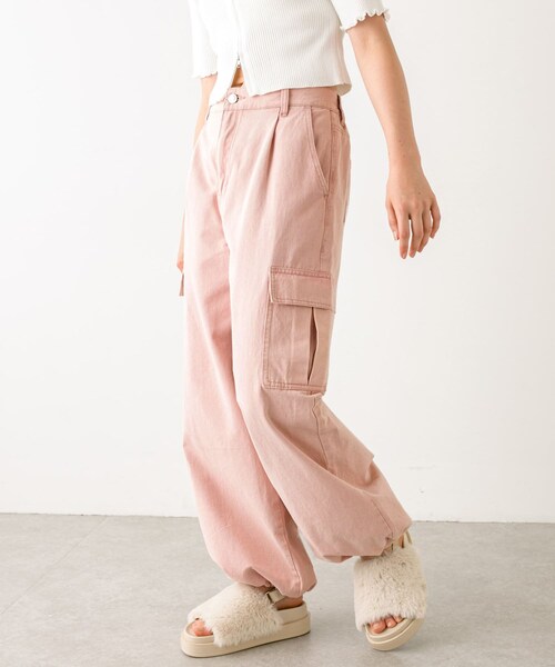 人気のカーゴパンツがトレンドデニムで登場!■デザイン・デニムのケミカル加工がお洒落なデザインのカーゴパンツ。・生地は柔らかいデニムで履き心地も良いです。。・裾はドローコードで絞ってシルエットの変化を楽しめます。・裾は絞らずにゆるっと着用するのもおすすめ。・ストリートなアイテムですが、ガーリーライクにも着こなせるカラー展開です。■カラー・ピンク/ブルー/スミクロの3色展開■スタイリング・クロップド丈のトップスで合わせると今っぽいバランスに。・ブラトップにテーラードジャケットを羽織ったスタイリングも◎・厚底スニーカーなどカジュアルな足元がおすすめ。------------------------------------裏地:なし光沢感:なし透け感:なし伸縮性:なし手洗い: 可能タンブラー乾燥: 不可アイロン: 110℃まで-------------------------------------model:166㎝ お取り扱い上の注意※キャンペーンやフェアにより価格が変動する場合がございます。※サンプルで撮影している為、実際の商品と若干仕様が異なる場合がございます。※着用、お取り扱いの際は、商品についている品質表示とアテンションタグを必ずご確認下さい。※ご覧のモニター環境や撮影環境により実際の商品と多少色味が異なって見える場合がございます。ご理解の程よろしくお願いいたします。【デニム】デニム製品の特性上、着用や洗濯によって「色落ち」「色移り」が生じます。デニム製品の特性をご承知の上、色合いの変化をお楽しみください。・ご着用中の摩擦等により移染します。白・淡色系の衣服、ハンドバッグ、靴、シート等は特にご注意ください。・デニム製品が雨水や汗で濡れると、より色移りしやすくなります。・洗濯により洗液がにごり移染しますので、他のものと一緒にしないで単独でお洗いください。・洗濯後濡れた状態で放置されますと色移りしやすくなります。・色移りしやすいため、下着やインナーには暗いカラーのものを着用いただくことをお勧めいたします。≪返品・交換について≫・着用後、洗濯後の返品・交換は致しかねます。・商品到着後、着用前に商品状態のご確認をお願い致します。登録のおすすめ【気になるアイテムをお気に入り登録】・お気に入り登録した商品はメニューの「♡お気に入り」ボタンから、一覧表示することが出来ます。・完売商品の再入荷やラスト1点の通知、セールの通知を受け取ることが出来ます。パソコン(iPad)の場合・・・「カートに入れる」ボタン横に表示されている「♡」をクリックしてください。スマートフォンの場合・・・商品画像右上に表示されている「♡」をタップしてください。【PALCLOSETアプリのブランドフォロー】・新商品やお得な情報をいち早くcheckする事が出来ます。・スタッフのコーディネートをお楽しみ頂けます。