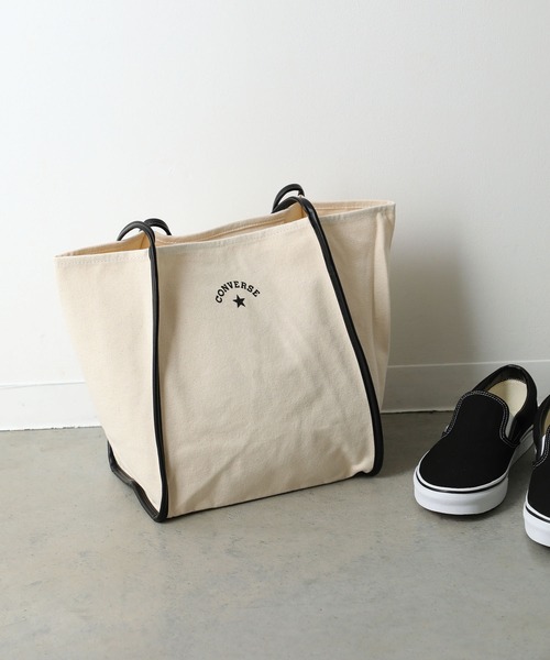 【CONVERSE】オーセンティックなデザインのロゴトートバッグが仲間入り♪ ◇DETAIL◇ シンプルで使いやすいトートバッグはいくつあっても困らない必需品。フロントに配置されたさりげないブランドロゴがスタイリングを邪魔せず、上品さをプラス。 タウンユースや通学バッグとして十分なマチ感。旅行のサブバック、お買い物バッグ等、汎用性の高さがうれしいポイントです。 お色はベーシックで合わせやすい、ブラックとホワイトの2色展開でご用意。 ジェンダーレスで使えるので、大切な人へのちょっとしたプレゼントや、パートナーやお友達とお揃いもおススメです。 ◇FABLIC◇ 丈夫で肌ざわりの良い綿100%生地です。 汚れてもお家の洗濯機で洗えるのでどんな場面でも気軽に持てます。 ◇コーディネート◇ 定番のカジュアルコーデと相性ばっちり。 長めに設計されたハンドルは秋冬のアウターの上からでもごわつかず持ちやすさ◎シンプルなデザインのバッグには遊び心のあるストリートスタイルがおすすめ。 太めシルエットのボトムスを合わせて、シャープな印象のバッグとの緩急さを演出。 足元もコンバースを履いてスタイリングに統一感をだしてみて☆ 【CONVERSE/コンバース】 1908年にアメリカで創立されたシューズブランド、CONVERSE(コンバース)。 当初はラバーシューズの製造会社として、冬場に活躍する靴をつくっていました。 その後、通年販売できる商品の必要性を感じた創業者のマーキンス・M・コンバースが、当時人気の高かったバスケットボールに着目。 バスケットボールシューズの代名詞でもある「キャンバス オールスター」を完成させました。 現在では「ジャックパーセル」「ワンスター」「ウエポン」等、数々のマスターピースをラインナップ。 100年以上にわたる歴史の中で、スポーツ、ストリート、カルチャー、ファッションなど様々なジャンルで愛されています。