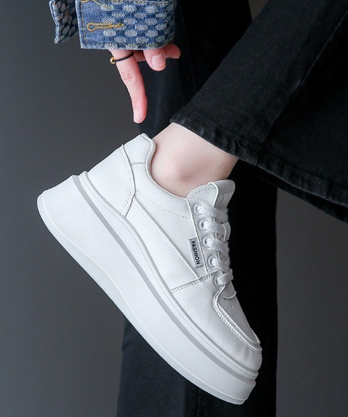 ワントーンカラーでコーデを引き立てる厚底スニーカー♪5cmの厚底ソールでおしゃれにスタイルアップを叶えるアイテム◎通気性に優れ、滑りにくいラバーソールを使用し、耐摩耗性と耐久性に優れた、軽くて柔らかい履き心地で長時間歩いても疲れにくい設計です。シンプルなデザインだからコーデを邪魔せず、メンズライクなかっこかわいいスタイルが完成します。※タグが気になる場合は、セルフカットしてご着用ください。★サイズ:35-40, ソール5cm▼商品の色は物撮りをご参照ください。※モデル着用写真は外光の強い元で撮影しているので実際の色よりも明るく写っております。※掲載画像につきましては、撮影環境やお客様の閲覧されますパソコンや携帯電話キャリアによって、実際の商品とは多少異なったお色に見える場合も御座いますので予めご了承下さいませ。モデル着用画像はサンプルのため、色味やサイズ等の仕様に多少の変更がある場合がございます。----------------------INFORMATION----------------------▼商品のお気に入り登録お気に入りの商品やサイズ・カラーまで、お気に入りの登録をしていただきますと、そのアイテムのセールの通知、ラスト1点になった時の通知や、完売しても再入荷通知を受け取ることができます!▼ブランドのお気に入り登録新商品の発売や再入荷、タイムセールやクーポン発行のお知らせなど、Futier landがお届けするお得な情報を受け取ることができます!※通知はアプリでも受け取ることができますので、是非アプリの通知設定をお願い致します!------------------------------------------------------------