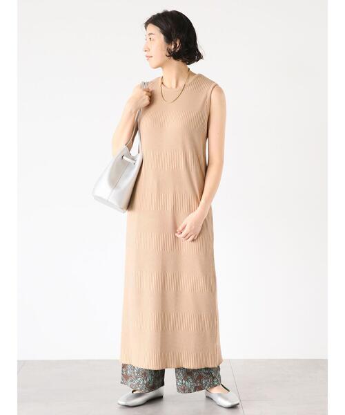 ランダムリブのデザインが表情感のある雰囲気を演出するワンピース。ノースリーブのルックスで、すっきりとした印象を与えます。すとんとしたシルエットが、美しい身体のラインを描いてくれるのもポイント◎1枚で着用するのはもちろん、カーディガンとレイヤードした着こなしもおすすめです。※商品画像は、撮影環境やお客様のご利用のPC・スマートフォンのモニター環境などにより実物と色味に差異がある場合がございます。