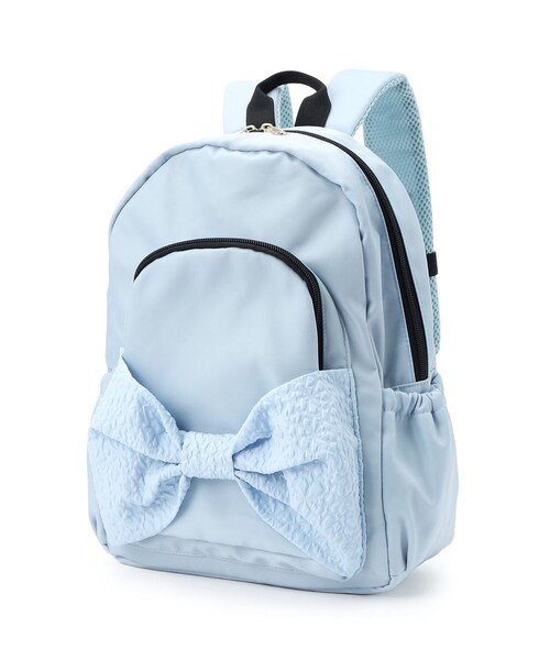 【デザイン】 人気のリボンディティールのリュックの素材を新しくしたデザインでお出かけやデイリー使いにもお使いいただけるリュックです。 ※ポケット数:内側×1 外側×3(ファスナー付×1) 【素材】 表面感のある素材のリボンとリュック本体は少し光沢のあるポリエステル素材。 店舗へのお問い合わせ商品番号:122-01135 ●製品寸法: 00(FREE):高さ34cm 幅(上部)16cm 幅(下部)23cm マチ12cm 持ち手上がり7cm ショルダー対応サイズ41~76cm 備考:重量:約320g