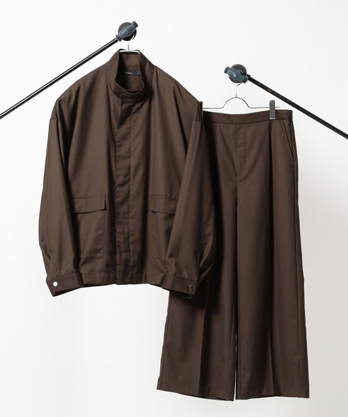 ーーー ■ポイント ・上下セットでお得なセットアップアイテム ・別々でもかっこよく決まる着回し抜群の一着〇 ・程よい光沢感が高級感溢れ、高見えするセットアップ! ・トレンドのルーズシルエット/オーバーサイズで仕上げました。 ====== ■参考サイズ M:~175cm L:175cm~ ====== ■デザイン <ジャケット> 高級感溢れるスタンドカラーのジップブルゾン! スナップボタンを締めて着ることでハイネック仕様に変形〇 トレンド感溢れるオーバーサイズのシルエットで仕上げました。 <パンツ> 膝から裾にかけて広がりがあるフレアシルエットで脚長効果抜群〇 ウエストのサイド部分にゴムを内蔵することでINスタイルもおすすめです。 センタープレスを施すことにより、縦にもしっかりとシルエットが出ることでスッキリとした印象もプラス! ■素材 程よい光沢感と揺れ感で高級感溢れる素材感に〇 ドレープ感がありオールシーズン通して使える絶妙な質感です。 シワにもなりづらくイージーケアなのも嬉しいポイント〇 ーーー ■スタイリング 上下セットでお得な一着!もちろんセットアップで着用することでかっこよく決まります! 別々で使用して様々なスタイルを楽しめるこれからのシーズンに一着は持っておきたいアイテムです〇