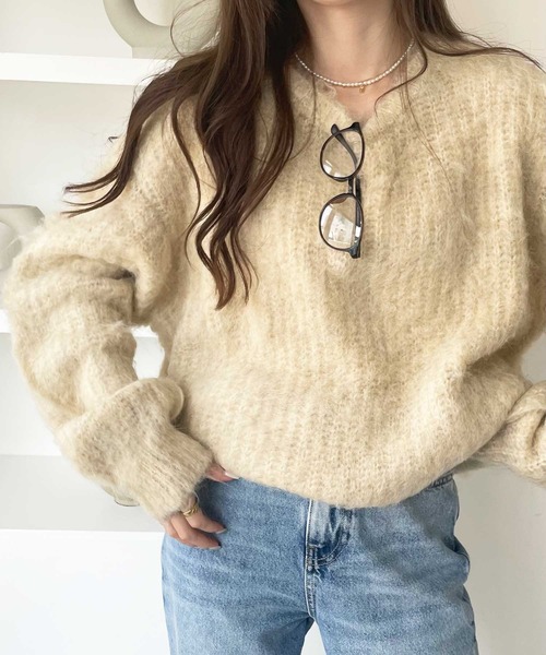 ゆるっと感がかわいい♪ 一枚で可愛くキマるシャギーニット 〇ゆったりシルエットが可愛い 〇ふんわりと柔らかなシャギー素材 〇色々なコーディネートが楽しめるニット! ■デザイン 毛足が長いふんわりとしたニュアンスのシャギービッグニット。 ゆるっとシルエットと長めの袖丈で可愛い着こなしに◎ 厚めのシャギー素材なので色々なコーデを楽しめます♪ ■素材 ふんわりと柔らかな毛足が長い素材のシャギーニット …………………… 透け感:なし 厚さ:厚め 伸縮性:あり 裏地:なし 洗濯方法:手洗い …………………… ■コーディネート シンプルなデニムパンツやスラックスとの相性◎ ティアードスカートと合わせて女性らしいコーディネートもオススメです! ※摩擦等により色移りすることがあります。 ※繊細な編地を使用しておりますので、バッグやアクセサリー等をお使いの際は引っ掛かりにご注意ください。 --------------------------------------------------------------------- ※サイズ寸法は実際の寸法と多少の誤差がある場合が ございます。 ※ご覧いただいているPC/WEB環境や撮影環境により、 多少色味が異なって見える場合がございます。 【お買い物をよりお楽しみいただく為に】 ▼商品のお気に入り登録をおすすめします♪ 『♡をクリック!』 完売カラーの再入荷やラスト1点の追加、 セールの際の通知を受ける事ができます。 ブランドのお気に入り登録もご一緒にお願い致します。 ---------------------------------------------------------------------