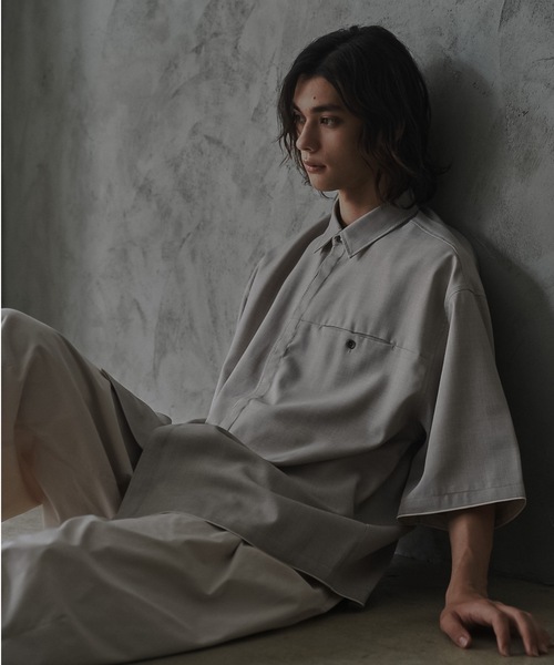 【 Oversized Stitch Half Sleeve Shirt / オーバーサイズステッチハーフスリーブシャツ 】shiki tokyo 2023 Spring Collection ギザギザステッチが特徴的な配色レイヤードシャツ [ 素材 ] ポリエステル100%の麻調合繊落ち感のある素材で動きのあるドレープを感じられます。ポリエステル特有の耐久性がありながらも麻調合繊で肌へのタッチも清涼感のある素材となっております。シワになりづらく、イーリーケアで着用頂けるのもポイントです。カラー展開:ライトグレー、ターコイズブルーサイズ展開:S / M / L [デザイン]shiki tokyoらしいオーバーサイズスペックのシャツ前立ては首下の第一ボタンが表に露出しそれ以降下のボタンは比翼仕立てで隠れるようなデザインとなっております。比翼仕立てにすると、ドレッシーな印象が生まれるものの配色のギザギザステッチがデザインとしてカジュアルとのバランスを取り、良いバランスにお洒落な一枚として完成致しました。胸ポケットは半身で切り替えを入れ、シームポケットを採用しました。あえてボタンを表出しすることで、それもデザインとして取り入れております。襟裏や袖先、裾の裏に共地で色違いのカラーを貼ることでちらりと見える配色がお洒落に感じられます。着丈をやや長めに設定することで、ワイドストレートパンツなどとのコーディネートにも最適です。 ※屋外での撮影画像や光の当たり具合で色味が異なって見える場合がございます。商品の色味はスタジオでの詳細画像をご参照下さい。 [ shiki tokyo ]"liberty&creativity"「リラックス・リアルクローズに"ファッションの自由な発想とモードなクリエイティブを」"shiki"を通して、柔和な雰囲気の中にもこだわりのある服を。▼商品のお気に入り登録完売カラーの再入荷通知や、ラスト1点、セールの通知をお知らせ致します。▼ブランドのお気に入り登録新商品や再入荷など、いち早くブランドの情報を受け取ることができます。 是非ご利用頂き、お買い物をお楽しみ下さい。※商品のタグ(下げ札)に記載されている価格に誤りがございます。商品のタグ(下げ札)に記載してある価格は販売価格と関係ございません。