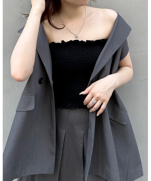 2023 AW 秋冬アイテム後ろ姿も可愛さを忘れない、バックオープンデザインのベストカットされたバックにベルトでアクセントをつけた着るだけで今っぽい最新アイテム。カジュアルながらきれいめな印象を与えるので、パンツスタイルからキャミワンピ合わせまで自由自在。セットアップのスカパンと合わせると大人可愛い着こなしに。セットアップ対応アイテム・1234-300086【サイドベルトプリーツ/スカパン】⇒こちら$(function(){var title_tag = '';var video_tag = '';var spid = 'tab-box';var pcid = 'leftArea';if (document.getElementById(spid) != null) {$(title_tag+video_tag).appendTo('#'+spid);} else if (document.getElementById(pcid) != null) {$(title_tag+video_tag).appendTo('#'+pcid);}});