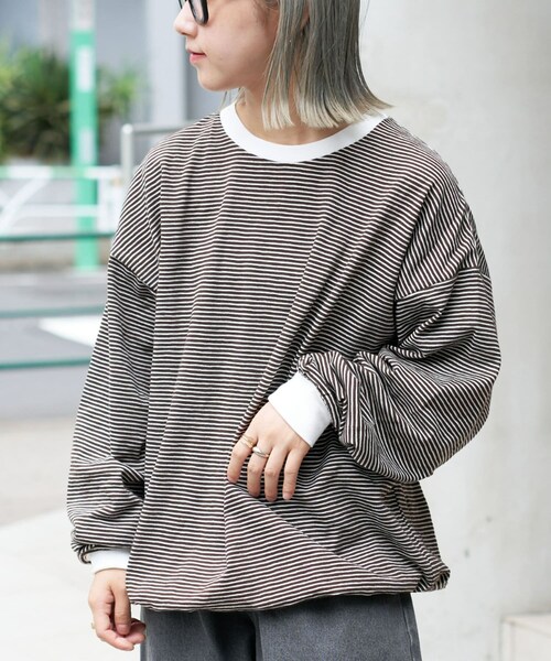 いますぐ着れるさらっとした素材のボーダーロンTeeがかわいらしい配色になって登場!■デザインリブとボディーカラーの配色バランスがとれたボーダーTシャツです。細ピッチのボーダーで子供っぽくならずに着れるのも◎リラックス感のあるビッグシルエットで、柔らかくさらっとした肌触りで着心地も抜群。裾のドローコードを絞ってシルエットの変化もお楽しみいただけ、ベーシックアイテムながらも、他とは違う差別化された一着となっています。■スタイリングシンプルにデニムやワイドパンツ、スキニーパンツなどボトムスを選ばずに着ていただけます。デザインとシルエットで一枚でも様になりますが、カーゴパンツやショーツにベストを合わせたトレンドコーデもおすすめです◎\ロンTeeのおすすめはほかにも!/・一枚でおしゃれ見えする着心地抜群のロンTee⇒マルチボーダードロストロンTee・年齢問わず着れるプリントがポイント!⇒ミニ裏毛プリントドロストロンTee■スタッフコメント(158cm womens)Lサイズだととってもゆったりサイズだったので、160㎝以下の方はMサイズがおすすめです。リブで袖が落ちてこないのでオーバーサイズでも着やすかったです。(177cm mens)177cmでほどよくゆとりのあるサイズ感でした。大きすぎないので、ジャケットやシャツのインナーに着てもごわつきにくいと感じました。・・・・・・・・・・・・・・・・・・・・・・透け感:なし裏地:なし伸縮性:あり光沢感:なし生地の厚さ:やや薄め・・・・・・・・・・・・・・・・・・・・・・■お手入れ方法洗濯:液温は40℃を限度とし、手洗いができるアイロン:不可タンブル乾燥:不可▼気になる商品を登録ハートをクリックして《お気に入り登録》がオススメです!セール情報や完売カラーの再入荷通知、ラスト1点の通知などを受け取ることができます!▼ブランド新商品や再入荷など、ブランド情報をいち早く受け取ることができます!※画像の商品はサンプルです。 実際の商品と仕様、加工、サイズ、素材が若干異なる場合がございます。