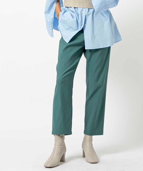 \履けばトリコ やみつきパンツ/ ■□やみつきジョガーから派生した新型パンツ□■ スポーティーデザインなのに、大人キレイ見え ■デザイン 定番のやみつきパンツがリニューアル! 体型カバーするシルエットはそのままに、ゴムウエストのフロントギャザーをなくしてお腹周りをすっきり見せつつ、ウエストインもキマるようにデザインをアップデート。 さらにワンタックを施したことで、ほんのりマニッシュでキレイ目な雰囲気に仕上がりました。 ポケット口のパイピングもさりげないポイントです。 また、裾にかけてきれいに窄まっていたラインを緩やかなテーパードにし、ヒップラインをきれいに見せつつ、今までよりもさらにスタイリングの幅を広げてくれる一本になりました。 ■素材 ストレッチ素材はそのまま継続。 体のラインを拾いにくい肉厚な生地を使用し、適度なテーパードシルエットとストレスフリーな動きやすさが魅力です。 ストレッチ性&履き心地の良さを追求したこだわりの進化版パンツです。 ■スタイリング スニーカーにもパンプスにも合わせやすく、どんなスタイリングにも対応する優れモノ。 きちんと感のある着こなしからスポーティーな印象の着こなしまで幅広く対応するパンツです。 今シーズンは、ジョガーのような見え感が軽減した緩めのテーパードなので、ショートブーツ合わせも違和感なく取り入れて頂けます。 透け感:なし 生地の厚さ:普通 光沢感:なし 裏地:なし ウエストゴム:あり サイドポケット:あり 家庭洗濯:手洗い可能 【注意点】 ※撮影商品はサンプルの為、実際の仕様と異なる場合がございます。 ※画像の商品は光の照射や角度、お使いのモニター環境により、実物と色味が異なる場合がございます。スタジオ物撮りの画像が実物の色味に一番近くなっております。 ※予約商品の場合、お届け予定はあくまでも目安となります。 生産の都合上、お届け時期が前後したり実店舗入荷時期とずれる場合がございますので、あらかじめご了承ください。 品名:やみつきストレッチパンツ 品番:7640-634-0259
