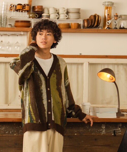 大胆なデザインのトレンドアイテム■デザイン大胆なマーブル柄が特徴的なダブルジャカードニットカーディガン。アーティスティックなデザインに加え、シャギー加工を施すことでレトロな雰囲気を演出。旬の素材感と、個性を演出するデザイン性の高さが魅力のひと品です。■コーディネート存在感のあるデザインで主役級のアイテム。トレンドのワイドパンツと合わせたシンプルなスタイリングがおすすめです。■サイズ程よくゆったりとしたリラックスフィットを採用。抜け感のある、旬のスタイルを演出します。■素材アクリル糸を使用し、シャギー加工を施した柔らかな素材。触り心地が良く、マーブル柄が独特のアート感を醸し出します。レトロな雰囲気とモダンなデザインの融合が魅力です。Model:H176 Size:L (BROWN)Model:H178 Size:L (BROWN) (SAX)Model:H182 Size:L (SAX)Model:H165 Size:S (SAX)※商品の色味は白背景商品単体で撮影した画像をご参照ください。※屋外撮影による光の当たり具合やパソコンなどの閲覧環境によって、実際の色味と異なって見える場合がございます。予めご了承ください。