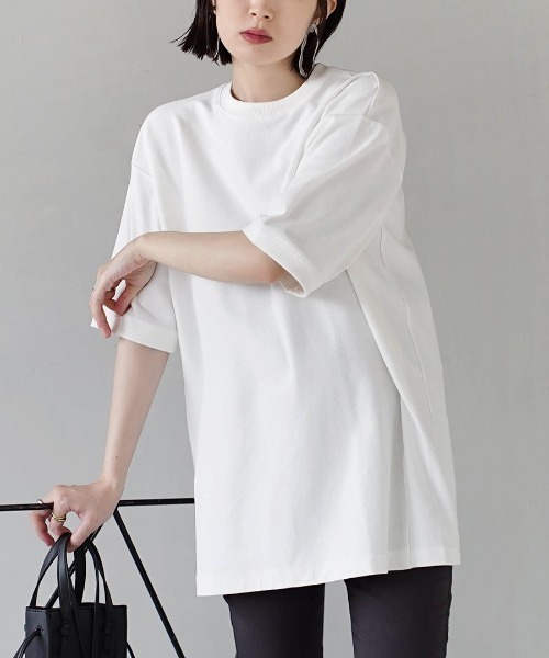 上質、そして肉厚に。 約10.5オンスのヘビーな質感が魅力な一枚。 トレーナーのような肉厚感とUSAコットンのドライな風合いがマッチしており、メンズライクな着こなしが叶います。 ゆったりとした身幅と長めの丈感で、体のラインを拾わずラフに着られるアイテム。 洗濯:洗濯機使用可 洗濯:ドライクリーニング不可 ※お洗濯の際はネットをご使用ください ※アイロンの際はあて布をご使用ください