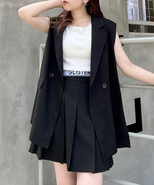 2023 AW 秋アイテム 【大胆なバックデザインが目を惹くこなれベスト・ジレ】 ▼Design ・バックのカッティング×ベルトデザインで後ろ姿も抜かりないこなれ感あふれるベストです。 ・着回ししやすいミドル丈で、羽織るだけで抜け感のあるコーディネートが完成します。 ・大きめシルエットでモードな雰囲気に。オンオフ問わず着こなせます。 ・合わせるインナー次第でロングシーズン活躍すること間違いなし。 ・暑い季節はノースリーブで。肌寒い季節はTシャツやカットソーの上に羽織りやすいオーバーサイズの作りです。 ▼Styling ・スカパンとセットアップで着こなすのが今季のトレンドスタイル。 ・インナーにさっと重ねるだけで抜け感あふれるコーデが完成します。 ・タンクトップやTシャツ、シアートップスなどお手持ちのアイテムとも組み合わせやすいです。 ・デニムやロングスカートで大人っぽく着こなすのも◎ セットアップ対応アイテム ・1234-300086【サイドベルトプリーツ/スカパン】 ▼Fabric ・ポリエステルを100%使用しているので型崩れしにくく、シワになりにくいです。 ・ロングシーズン着まわせるさらっとした素材感。 ・フェイクポケット仕様。 ----------------------------------------- 【以下グレー参考。カラーにより多少の誤差あり】 ・透け感:透けない ・伸縮性:なし ・生地の厚さ:薄い ・裏地:あり ----------------------------------------- 【スタッフ着用コメント】 身長155cm お洒落見え間違いなしのバックデザインベストです! 春~秋のコーデをワンランク上げてくれるジレは着回し力も抜群◎ 後ろのベルトデザインでコーデのマンネリ感を防いでくれます。 大きめシルエットなのでインナーに重ねやすく、腰回りもカバーしてくれるのもうれしいポイント!