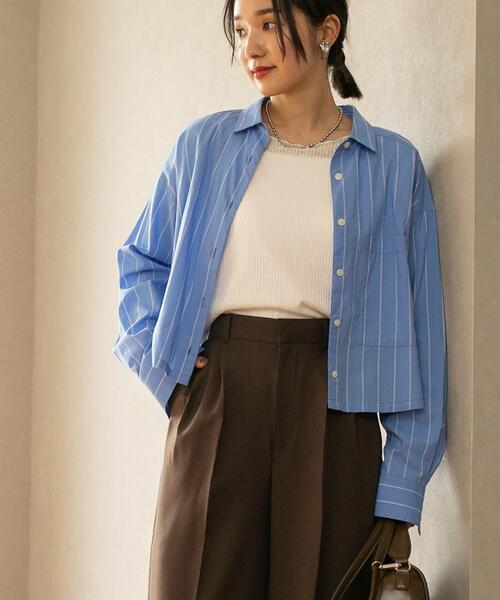 スタイルアップが叶う、トレンドのクロップド丈シャツ ■デザイン さらっと1枚で今年らしい着こなしが叶う、トレンド感満載のクロップド丈シャツ。 着丈が短いので自然とスタイルアップが叶います。 程良くワイドな身幅なので着ていただくと可愛いシルエットを演出でき、大人の女性にも挑戦しやすいデザインです。 ■素材 コットン×レーヨンのさらっとした軽い素材を使用。 シャツらしいパリッと感の中にも、ほんのりと落ち感があり、女性らしい印象です。 ■スタイリング カジュアル且つ大人っぽく着ていただくデザインはシンプルなアイテムと相性抜群。 前ボタンを開けて羽織りとしても着用可能でコーデの幅が広がります。 羽織りとして中にタンクやキャミを合わせたコーデが今シーズンはおすすめです。 ボトムはハイウエストボトムと合わせていただくとバランスの良い着こなしになります。 透け感:ホワイトはややあり 生地の厚さ:普通 光沢感:なし 裏地:なし 家庭洗濯:手洗い可能 【注意点】 ※撮影商品はサンプルの為、実際の仕様と異なる場合がございます。 ※画像の商品は光の照射や角度、お使いのモニター環境により、実物と色味が異なる場合がございます。スタジオ物撮りの画像が実物の色味に一番近くなっております。 ※予約商品の場合、お届け予定はあくまでも目安となります。 生産の都合上、お届け時期が前後したり実店舗入荷時期とずれる場合がございますので、あらかじめご了承ください。 品名:クロップドSHT 品番:7610-634-0178