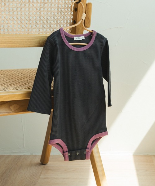 【ふんわりワッフル】 ユニセックスで着用できるデザインのシンプルな長袖ロンパースです。様々なボトムやレッグウォーマーとのコーディネートも楽しめるデザイン。 柔らかく伸縮性のあるサーマル生地を使用し、動きやすく着心地のいい仕上がり。 【スタイリング】 ユニセックスで着用出来る優しいカラーのリブ配色もポイントです。スナップボタンが付いていてお着替えやオムツ替えも簡単なので、日々のワードローブに追加して頂きたい一枚です。 生産時期により色味が若干異なる場合がございます。ご了承ください。 【ポケット】 なし 【伸縮性】 少しあり 【透け感】 なし 【クリーニング】 洗濯機洗い可(ネット使用) 【裏地】 なし