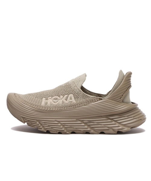 循環型社会を念頭に置いて設計された先進的なスリッポン、RESTORE TCは、最小限の素材から作られ三つのパーツからなるシンプルな構造。 伸縮性のある靴下のようなアッパーに、30%サトウキビ由来のEVAインソール、20%サトウキビ由来のEVAアウトソールを組み合わせ、つま先の保護のためのEVAトウキャップと部分的なストレッチパーツで、快適な履き心地を実現している。 HOKAONEONE/ホカオネオネ 2009年にフランスで設立されたフットウェアブランド。 ニュージーランドのマオリ族の言葉でHOKA ONE ONE (地上に舞い降りる時だ)を意味し、人々が山をラクに飛ぶように駆け降りることが出来るシューズを作れるというブレない信念から生まれた。 現在では、プロのランナーはもちろん、日常に取り入れやすいファッショナブルなデザインまで幅広く展開している。