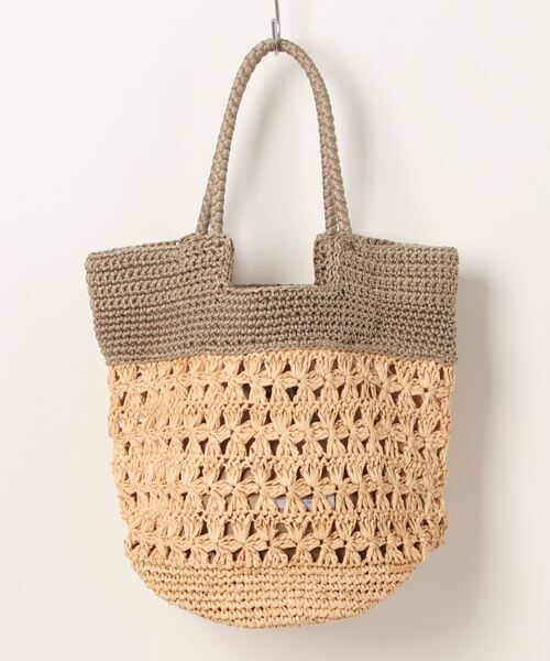 カシュカシュ cache cache / ラフィア切り替え編みトートバッグ■デザイン&ポイントラフィアとポリエステルの透かし編みを組み合わせたトートバッグ。素材の組み合わせと異なる編み方がポイントになっています。巾着バッグも付属されています。ベーシックなカラー展開が大人っぽいカゴバッグです。■アテンション天然素材を使用している為、風合い、色目などが1点1点異なります。本体の編み終わり部分に段差やサイズ・かたちに若干の違いが生じます。また摩擦や水濡れ(雨、汗など)により色落ちしやすい為、淡色のお洋服との組み合わせはお控えください。■ブランドコンセプト-- cache cache / カシュカシュ --カシュカシュとはフランス語で「かくれんぼ」。ガーリッシュとちょっと背伸びをした大人っぽさをミックスしたデイリーカジュアルなファッション小物を展開。カラフルで素朴なハンドクラフトやかわいらしいモチーフ使いで、洋服とのコーディネートに可愛らしさと遊びをプラスするバッグを提案。■商品のお気に入り登録をお願いします【カートに入れる】横のハートマークをクリック再入荷やラスト1点のお知らせ、セール情報などのお知らせを受け取ることができます■下記の品番をお申し付け下さい。品番:01-00-77950