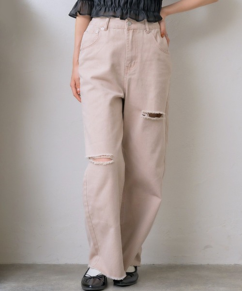 <ダメージデザインがこなれ感◎のデニムパンツ>▼デザインカジュアルなダメージデザインを施したゆったりシルエットのデニムパンツ程よいゆったりシルエットでコットン100%のデニムラバーにもオススメ!しっかりとハイウエストデザインでコンパクトなトップスと相性抜群◎ガーリーコーデにぴったりな淡いピンクが注目カラー!▼コーディネートとことんカジュアルにコーディネートするのもあえて女性らしいトップスともコーディネートをオススメしたいこなれ感のあるデニムパンツ------------------------------生地感:普通伸縮性:なし透け感:なし裏地:なし------------------------------▼ブランド紹介ems excite (エムズエキサイト)“more fun more cute”今をもっと楽しくもっと可愛くいたい女の子に向けたgirly cuteなブランド#ピンク#ピンクコーデ#カラーデニム#デニム#ピンクデニム#ダメージデニム#ダメージ#大人ガーリー#ガーリーコーデ#ピンクコーデ▼注意事項※撮影環境やモニター環境によって実際の商品とお色味が多少異なってみえる場合がございます。品番:EA334832T011/ 品名:ダメージデニムパンツ