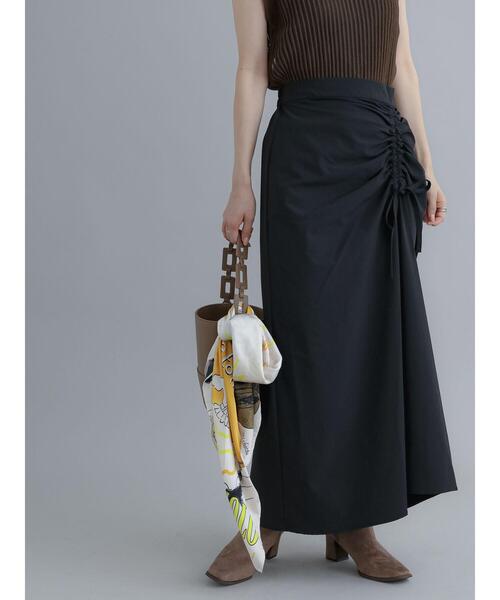 フロントのくしゅっとしたギャザーがスタイリングのアクセントになるスカート。生地には程よい伸縮性があり、動きやすい着心地を実現します。ボトムスにタックインしたメリハリのある着こなしがおすすめ◎Tシャツやシャツなど、あらゆるトップスに合わせやすいアイテムです。※商品画像は、撮影環境やお客様のご利用のPC・スマートフォンのモニター環境などにより実物と色味に差異がある場合がございます。★《お気に入り登録》でお得な情報をGET★① 商品ページ内のハートマークをクリック!② 以下通知が受け取れます!「再入荷」「ラスト1点」「特別セール」etc..\ブランド、ショップのお気に入りも是非!/【その他採寸】F ウエスト:[後ゴム仕様]68cm