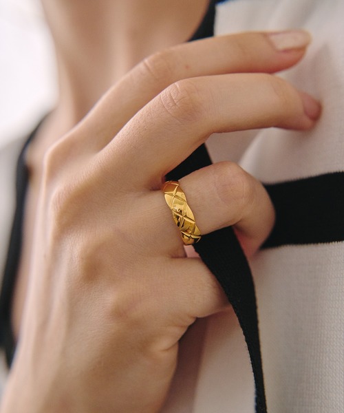 ■DETAIL■ キルティングライクなデザインが特徴的なリング。程よい存在感で手元を華やかに演出。カジュアルなお洋服にもオケージョンにもどちらにも合わせやすくシーズンレスでお使いいただけます。 品番:CR0026 素材:サージカルステンレス サイズ:9号,11号,13号 幅:0.5cm ■316Lとは サージカルステンレス素材とは その中でもアクセサリーに使われているのが「316L」と呼ばれる腐食しにくい素材で、医療用のメスなどの医療用器具や、ハサミなどにも使われています。変色しにくい上に、お風呂、温泉、プール、海など水に強く錆びにくいのが特徴です。また、金属アレルギーの方でもご使用いただけるのが最大のメリットです。 ・*:.。 。.:*・゚✽.。.:*・゚・*:.。 。.:*・゚✽.。.:*・゚ \ Crafty ZOZO STORE / ・*:.。 。.:*・゚✽.。.:*・゚・*:.。 。.:*・゚✽.。.:*・゚ Crafty🍒プチプラガーリーアクセサリー ・*:.。 。.:*・゚✽.。.:*・゚・*:.。 。.:*・゚✽.。.:*・゚ あざと可愛いアクセサリーがいっぱい💎✨ プチプラだけど高品質で ガーリーなアクセサリーブランド🍒 #ガーリー #あざとい系女子