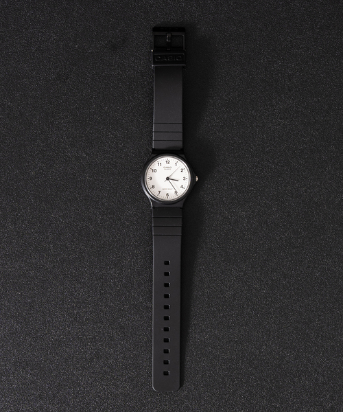 軽く腕にフィットする3針タイプの薄型スタンダードモデルMQ-24-7BLLJH シンプルな3針モデル、そして20gという超軽量ウォッチは普段使いや、ジャケットにハズシでもつけてもらいたい万能な一本です。 ケースサイズ(縦×横×厚さ)38.8 × 34.9 × 7.8 mm 質量:20 g ケース・ベゼル材質:樹脂 バンド:樹脂バンド 防水性:日常生活用防水 使用電源・電池寿命:電池寿命:約3年 【CASIO / カシオ】 1957年創業の時計・電子情報機器メーカー。カシオは創業当初から、「便利さ」「快適さ」だけでなく、使う「喜び」や手にしたときの「ワクワク」を大切にしてきた。電卓のメーカーとしてデジタル技術に強みを持ち、1983年にいまや代表的商品となった「G-SHOCK」を製品化。時計にタフネスという新たな概念を築き上げた。常に「独創的な製品」を追求するべく、カシオは今日も進化し続けている。