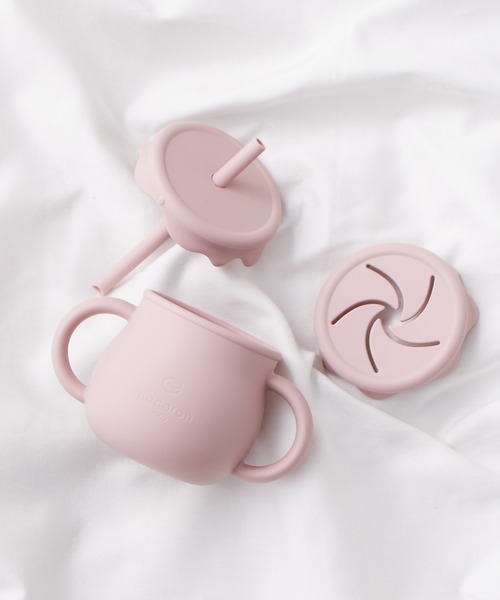 蓋を変えるだけで、ストロー飲み、コップ飲み、スナックカップと3wayで使用できるマグ。まるでハニーポットのようなコロンとした見た目で、お子様の”コップ飲み”や”手掴み”の練習を楽しくサポートします。 まあるいフォルムに優しいマカロンカラーの組み合わせは、出産祝いやプチギフトとしてもぴったり。全てシリコン素材で出来ているので、やわらかく落としても大丈夫。250ml入る少し大きめの作りなので、ベビーから大人まで幅広く使えるアイテムです。 対象月齢:12ヶ月〜 付属品:マグ本体、蓋2種、ストロー サイズ:横手持ち部:13cm/横本体:8cm/縦ストロー着用時:11cm/縦本体:7.5cm 耐冷、耐熱温度:-20℃から220℃まで対応 電子レンジ、食洗機:可 煮沸消毒:可 <煮沸消毒の際は下記にご注意ください。> ・鍋の内側はお湯よりも高温となっているため、パーツが密着すると変形するおそれがあります。 ・5分以上煮沸したり、油分が残った鍋で煮沸しないでください。白濁や変形のおそれがあります。 ※薬剤は使用できません。 ※お子様の使用時は、目の届く範囲でご使用下さい。ストローマグを使用の際は、水平にお持ちください。中身が全くこぼれない設計ではありません。