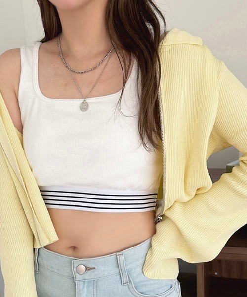 ◆着回し力抜群な優秀インナー! ボーダーのラインがオシャレなショート丈インナー。 カップ付きで楽な着心地が◎ トレンドの短丈トップスと合わせると、ちらりとボーダーデザインが見えて コーデのアクセントになります! トレンドのお腹見せファッションをアップデートしてくれること間違いなし♪ また、スクエアネックで首回りが広めに開いているのでお洋服の邪魔をせず、 インナーとしても優秀なアイテムになっています◎ --------------------------------------- 透け感:なし 伸縮性:あり --------------------------------------- ※ご覧のモニター環境や撮影環境により 実際の商品と多少色味が異なって見える場合がございます。 ご理解の程よろしくお願いいたします。 【お買い物をよりお楽しみいただく為に♪】 ▼商品のお気に入り登録をおすすめします ♡をクリック! 完売カラーの再入荷や、ラスト1点の通知、 セールの際の通知を受ける事ができます。 ブランドのお気に入り登録も ご一緒にお願い致します。