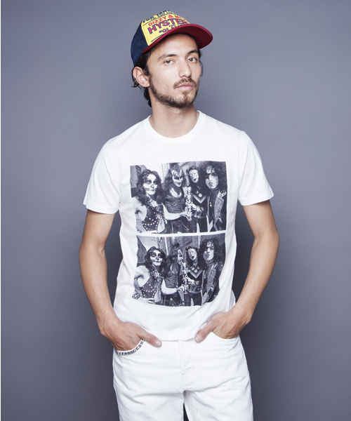 ■KISS 1974年ファーストアルバム"地獄からの使者"(原題KISS)をリリースした直後のCREAM MAGAZINEでのフォトセッション写真をプリントしたロックフォトTシャツ。 このファーストアルバムには後にプラチナアルバムとなる。