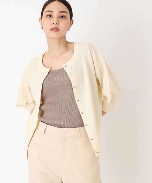 ■ポイント/詳細 カノコの編地が映えるカーディガンです。 5分丈のパフ袖で羽織としてもプルーバーとしてもかわいいデザインです。 プルオーバーで着用の場合前後2WAYでの着用も可能です。 シルバーカラーのボタンが上品見えのアクセントになっております。 ■素材/機能性 ポリエステル100%を使用した軽くてご自宅の洗濯機で洗っていただける素材を使用しております。 ■おすすめコーディネート キレイ目スタイルにもカジュアルスタイルにも合うデザインで、プルオーバーではフレアスカートやキレイ目パンツなどでオフィスカジュアルにも最適です。 カーデで着用の場合タンクやノースリワンピと合わせてデイリーなスタイルにも◎ こちらの商品は主に秋に着用いただける商品です。 モデル情報:身長164cm B76 W58 H86 着用サイズ:12(M) 店舗へのお問い合わせ商品番号:040-37008 ●製品寸法: 12(M):着丈55cm B104cm 袖丈29cm 肩幅53cm 13(L):着丈56cm B106cm 袖丈29cm 肩幅53cm 備考: