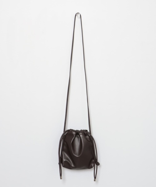 スタイリングにアクセントを加えてくれるトレンドの巾着バッグ! 〇ドローコードを絞ると、シンプルなショルダーバッグからトレンド感のある巾着バッグに! 〇ショルダー紐を結んでお好みの長さに調節可能! 〇ショルダー紐を外せばシンプルな巾着バッグに変身 〇ユニセックスでお使い頂けます! styling モードなテイストにはもちろん、カジュアルなコーディネートに合わせても締まりのあるコーディネートに仕上がります。 material 微光沢のあるフェイクレザーを使用しています。程良く柔らかく、しっかりとした厚みのあるフェイクレザーのため、安心感があります。 【2023 Autumn/Winter】 ※この商品は合成皮革を使用しています。素材の特性上、空気中の湿気や紫外線、熱や汚れなどにより、時間の経過と共に劣化(剥離・べたつき)します。 ※長時間、折りたたんだ状態で保管しないで下さい。 ※その他お取り扱いに関しましては、商品に付属のアテンションタグをご覧ください。 総重量 : 約140g ※商品画像は、光の当たり具合やパソコンなどの閲覧環境により、実際の色味と異なって見える場合がございます。予めご了承ください。 ※商品の色味の目安は、商品単体の画像をご参照ください。 ▼お気に入り登録のおすすめ▼ お気に入り登録商品は、マイページにて現在の価格情報や在庫状況の確認が可能です。 お買い物リストの管理に是非ご利用下さい。