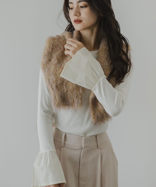異素材切り替えのフレアスリーブがポイント! レイヤードにもおすすめな万能リブトップス 【ディティール】 シンプルなカットソーに女性らしいフレアスリーブのドッキングデザインが新鮮なアイテム。 ボディは柔らかく伸縮性のある滑らかな肌触りのリブ素材を使用。 袖は立体感を演出するシャツ地なので、ニットやアウターと重ねて手元だけ見せるのもおすすめ。 「オーバーすぎず、タイト過ぎない」肉感を拾わない、ボディラインに程よく馴染む絶妙のサイズ感です。 【スタイリング】 キャミワンピやカーディガンのインナーに使うことで コーディネートに変化のでるベーシックアイテムです。 1枚ではもちろん、ジャケットのインナーとしても使えるのでロングスパンで活躍します。 ********************** 透け感:なし ※アイボリーは淡色のインナーをおススメします。 裏地:なし 伸縮性:あり 光沢感:なし 生地の厚さ:普通 ********************** ※ご覧のモニター環境や撮影環境により実際の商品と多少色味が異なって見える場合がございます。 ご理解の程よろしくお願いいたします。 【お買い物をよりお楽しみいただく為に】 ▼商品のお気に入り登録をおすすめします ♡をクリックしてください。 完売カラーの再入荷や、ラスト1点の通知、 セールの際の通知を受ける事ができます。 ブランドのお気に入り登録もご一緒にお願い致します。