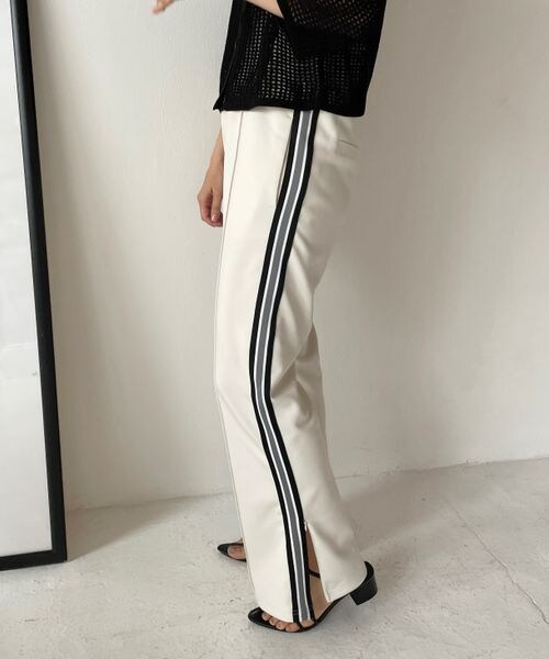 ーーー ■素材■ ポリエステルとポリウレタンの混紡のジャージ素材になります。 ジャージ素材なのでストレッチ性に優れイージーな履き心地、またポリエステル素材なので色落ちなどの心配が有りません。 ■デザイン■ ジャージ素材のベルトイージー仕様のパンツなので4WAYストレッチでノンストレスに着用いただけます。 サイドにラインとレースの今っぽいディテールの入ったデザインで裾ファスナー仕様が抜け感も演出してくれます。 ーーー ■スタイリング■ フレアシルエットと裾のZIPデザインでジャージ感が出ないよう工夫しています。 レースブラウスやスカートなど甘めのトップスとも相性良く◎レースデザインはシアーシャツなどのカジュアルなトップスと合わせがオススメです。