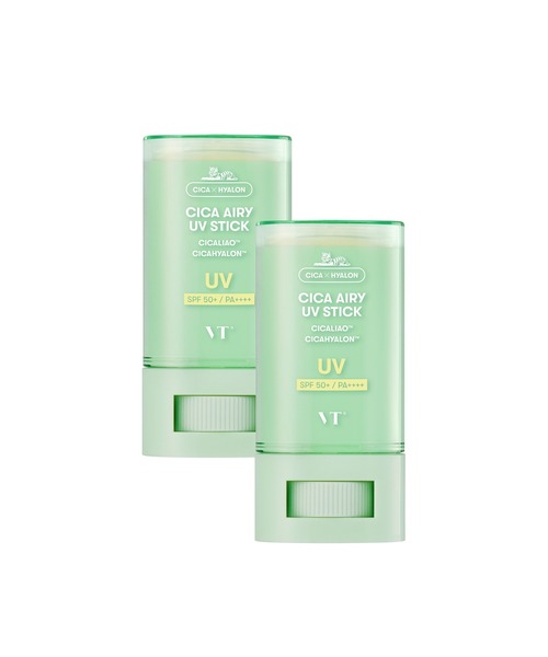 【1+1】一つ買うともう一つ付いてくる! SPF50+ / PA++++UVカットしながら肌をケアする日焼け止め CICA AIRY UV STICK 日常生活から受ける紫外線(UVA)とレジャー活動から受ける紫外線B波(UVB)を同時にカット。 日焼けの原因や老化を促進する紫外線から肌を守ります。 ✓こだわりの成分がお肌をケア! - パンテノールが外部の刺激から肌をまもり、独自成分のシカヒアルロン™がゆらぎ肌へアプローチ。 - セラミドが紫外線による乾燥ダメージから肌のうるおいを守り、スキンケアをするように肌ケアをサポート。 ✓さらさらとしたエアリーテクスチャーが快適な使い心地 - 軽いテクスチャーでさらっとしてべたつかない。 - 手を汚さずに外出先でも塗りやすいスティック状タイプ。 - 2重パウダーが肌の皮脂を吸着し、毛穴を目立ちにくくさせ、なめらかな肌へ。プライマーとしてもお使いいただけます。 ✓肌だけでなく環境にも優しいリーフフレンドリーな日焼け止め ■使用方法 スキンケアの最後にお使いください。 スティックを5mmほど繰り出して肌に直接塗布し、ムラがないように手で伸ばしてなじませます。 【使用上又は保管上の注意事項】 1.お肌に異常が生じていないかよく注意して使用してください。 化粧品がお肌に合わないとき即ち次のような場合には、使用を中止してください。そのまま使用を続けますと、症状を悪化させることがありますので、皮膚科専門医等にご相談されることをおすすめします。 (1)使用中、赤味、はれ、かゆみ、刺激、色抜け(白斑等)や黒ずみ等の異常があらわれた場合 (2)使用したお肌に、直射日光があたって上記のような異常があらわれた場合 2.傷やはれもの、しっしん等、異常のある部位にはお使いにならないでください。 3.目に入った時は、直ちに洗い流してください。 4.保管及び取扱い上の注意 (1)開封後はお早めにご使用ください。 (2)乳幼児の手の届かないところに保管してください。 (3)高温又は低温の場所、直射日光のあたる場所には保管しないでください。 ※お肌に合わない時はご使用をおやめください。