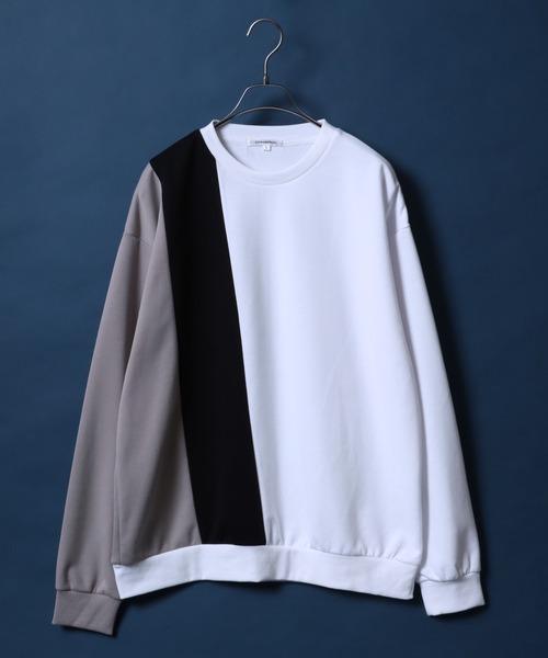 Punch the dough Color Switching Design Oversized Sweatshirt/ポンチ 3色切り替え オーバーサイズ トレーナー スウェット