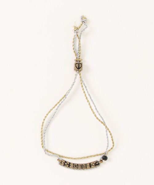 Good-Luck Bracelet ご自身用にはもちろん、恋人や友人とのお揃いもおすすめ◎ 自然と切れた時に願いが叶うかも♪? イニシャルまたはハートモチーフ入りミサンガです。 幾何学模様のメタルパーツもデザインポイント。 長さ調整できますので、ユニセックスでお使いいただけます。 ●ブラック:ハートモチーフ ●ゴールド:ハートモチーフ ●A:イニシャル【A】 ●K:イニシャル【K】 ●M:イニシャル【M】 ●R:イニシャル【R】 ●S:イニシャル【S】 ●Y:イニシャル【Y】 ※こちらの商品は1点1点職人による手作りとなります。その為、形や色合いなど若干異なる場合がございます。あらかじめご了承ください。 ※屋外での撮影画像は、光の当たり具合で色味・カラーが違って見える場合がございます。商品のカラーは、スタジオ撮影の画像をご参照ください。 Amina Collection Co.,LTD.