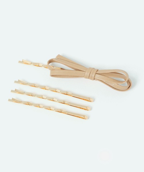 ーーー リボンモチーフのヘアピンとゴールドカラーのヘアピンがセットになったアイテム。 それぞれ単品で着けたり、組み合わせて着けたりと、その日の気分やヘアスタイルに合わせてお使いいただけます。 シンプルなデザインなのでどんなコーデとも相性抜群。 ーーー