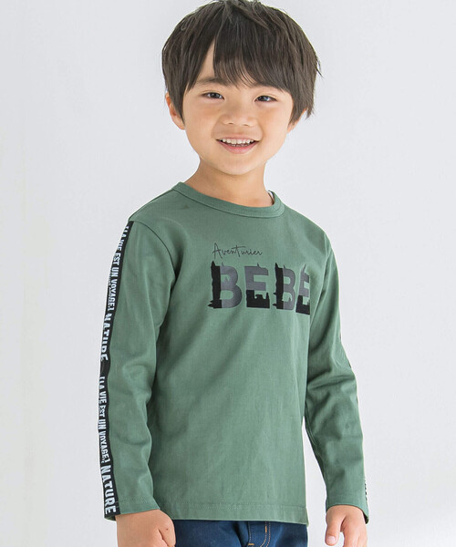 表情のあるフロッキープリントが入った男の子用長袖Tシャツ。 カジュアルコーデに取り入れやすいオフホワイトとグリーンの2色展開。 フロントのBeBeロゴはフロッキープリントとラバープリント二つの手法を使い、見え感に差を付けた遊び心のあるデザイン。 よく見ると草木やクマのシルエットをロゴで表現しているのもポイントです。 袖にはロゴプリントのテープをあしらい、メンズライクでかっこいいテイストをプラスしました。 羽織りものの中からもしっかりロゴが存在感を出してくれる、おしゃれな1着です。 ※80・90cmのみ左肩ホックあり 【8月BOY シーズンテーマ】 Aventurier -冒険家- 大自然を進み豊かで贅沢な時間を過ごす冒険家。 山や川など自然を連想させるカラーや柄でアウトドアなルックをBeBeらしく落とし込んだアイテムを提案します。 【2023 AW Collection】 Je veux devenir... -ジュ・ヴ・ドゥヴニール(わたしのなりたいもの)- お気に入りの服を着ると、なりたい自分になれる。 上質でクラシカルなトラッドスタイルを自由な着こなしでアップデート。 私らしく進化した新しいスタンダード。 好きなものをいっぱい詰め込んで、“なりたい”をかなえるファッションを提案します。 【BeBe(べべ)】 "LOVE MODERN" 少しおませで、生意気なヨーロピアンカジュアルの提案。 時代性・流行性をとらえ、ベーシックでもワンポイントを施した遊び心、楽しさを盛り込んでいます。 シンプルだけど、こだわりのあるオリジナリティーを重視しています。 洗濯:洗濯機使用可