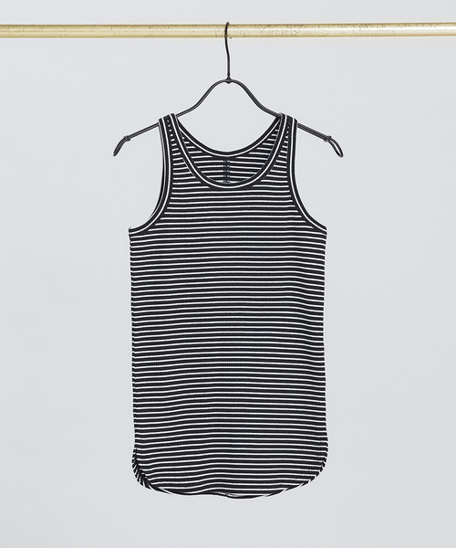 1年通して出番の多いアメスリタンク 【Design】 アメリカンスリーブがヘルシーなタンクトップ。ベーシックなボーダーなので合わせやすくカジュアルなコーデを楽しめるアイテム。大きすぎず程よいフィット感で、秋冬のニットなどのレイヤードにも着やすいです。 【Fabric】 肌馴染みの良いテレコのカットソーは着心地が良く、持ちも良いので長く愛用いただけます。 【Styling】 ボーダーを活かしてシースルーなど透けるアイテムのインナーにしたり、シンプルなシャツを羽織るだけのコーデもおススメです。