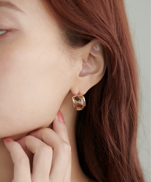 シンプルなデザインで使いやすいピアス。 艶のあるメタルフレームと、クリアカラーのピアス。樹脂部分が綺麗なカラーでポイントに。落ち着いた色味と程よいサイズ感で、色々なコーディネートに合わせやすさ◎