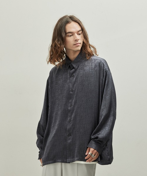 【UNISEX、トレンドシルエット】バルーンスリーブドレープドビーシャツ ■素材、機能 ドレープ性のある地柄のオリジナリティを感じるこだわりの素材を使用。 ■シルエット、デザイン 大きくとった肩幅と身幅がリラックスした印象で、大きくとったバルーンスリーブが特徴的なビッグシャツです。 ■カラー チャコール、ホワイトに加えてスタイリング映えするグリーンの展開になっています。 ■スタイリング TR素材のワイドパンツで合わせるたっぷりしたスタイリングやトレンドのストレートパンツでシルエットにメリハリを付けたコーディネートもおススメです。 裏地:無し 透け感:若干あり 伸縮性:なし 生地感・厚さ:薄め ポケット:なし その他仕様:なし 【モデル着用サイズ】 MEN:身長175cm 着用サイズL ※撮影場所やライティング、お使いのモニター環境によって色の見え方が異なる場合がございます。 ※商品のカラーは詳細画像の色味をご参照ください。