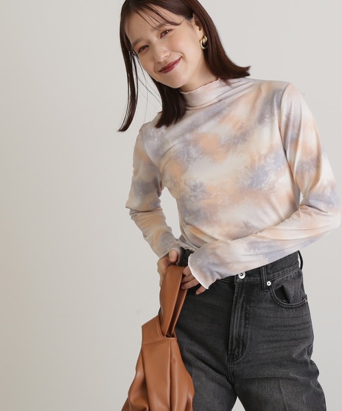 着こなしの幅を広げてくれるハイネックカットソーは、やさしい配色のマーブル柄がアクセント。襟、袖口、裾のメロー加工で、1枚着でもレイヤードスタイルでもフェミニンな雰囲気に見せてくれます。シンプルなシルエットなので、ジレジャケットやスウェット、ジャンスカやワンピースのインなど様々なアイテムのポイント使いに活躍します。**********************透け感:ややあり裏地:なし伸縮性:ややあり光沢感:ややあり生地の厚さ:薄手**********************