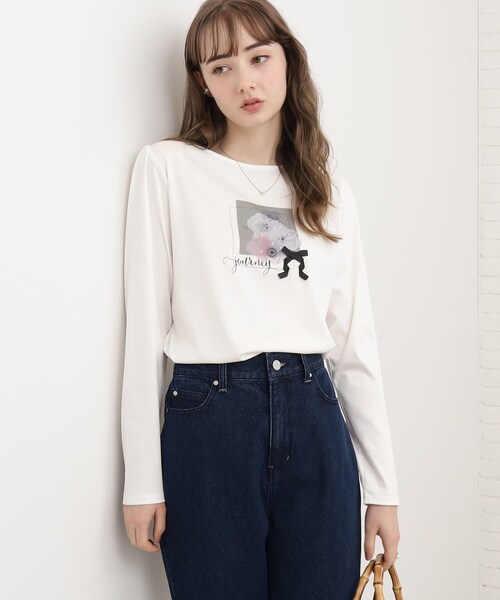 【素材】 表面がきれいでさらっとした手触りがポイントの、シルケット加工したスムース素材を使用。 コットン(綿)100なので肌ざわりも快適です。 ハンドウォッシャブル機能付き 【デザイン】 クチュールブローチらしい、フラワープリントやパール調ロゴなど華やかなデザインを施したロンT。 普段使いしやすく、程よく華やかさをプラスしてくれます。 モデル情報:身長167cm B80 W59 H82 着用サイズ:38(M) 店舗へのお問い合わせ商品番号:508-17521 ●製品寸法: 38(M):着丈58cm B94cm 袖丈59cm 肩幅34cm 40(L):着丈59cm B98cm 袖丈60cm 肩幅35cm 42(LL):着丈60cm B102cm 袖丈61cm 肩幅36cm 備考: