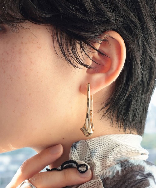 縦長のデザインが可愛い上品な印象のピアス。変形モチーフデザインで癖のないアイテムなのでオンオフ問わず着用いただけます。程よいサイズ感なので主張しすぎず馴染みやすいのもポイント。ご自身用はもちろんギフトとしてもおすすめです。
