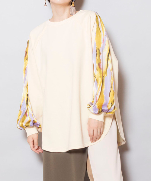 Autumn Winter collection クルーネックスウェットをベースに、袖サイドは布帛の切替になっており、ボリュームスリーブがポイントになるカジュアルになりすぎない1枚。 =========================== 透け感: なし 伸縮性: あり 光沢感: なし 裏地: なし 素材について: コットン素材で、サラリとしたドライな肌触り =========================== 【洗濯表示】 洗濯機可 ■商品のお気に入り登録 クーポンやタイムセール、再入荷通知やラスト1点など お得な情報を受け取ることができます。 ご登録をお忘れなく◎