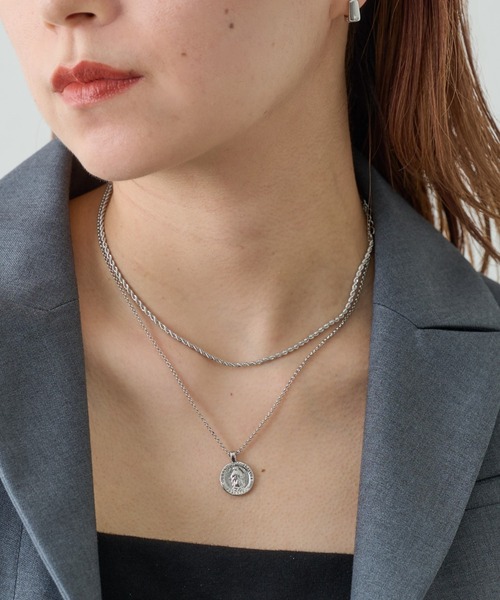 -2023.AW ACCESSORY COLLECTION- 【コインモチーフ+チェーンチョーカーの2SETネックレス】 人気のコインモチーフが目を惹くチェーンネックレスと、シンプルなチェーンチョーカーの2個セット。 そのまま2連で着けるのはもちろん、それぞれ取り外して単体での着用も可能なマルチWAYアイテム。その日の気分でスタイリングを楽しめるアイテムです。 メタルカラーの輝きが華やかで、さりげなく存在感のある2連デザインが首元のアクセントに。 ---------------------------------------------------- ■素材 本体: 真鍮, 合金, 鉄 ---------------------------------------------------- ■サイズ コインモチーフ: 1.4×1.4 長さ40+5 チェーンチョーカー: 長さ 35.5+5 ---------------------------------------------------- ※着用、お取り扱いの際は、商品についている品質表示とアテンションタグを必ずご確認下さい。 ※商品タグに記載されている商品名がWEBでの表記名と異なる場合があります。 ※画像の商品はサンプルです。実際の商品と仕様、加工、サイズが若干異なる場合がございます。 ※照明の関係により、実際よりもやや明るく見える場合がございます。またパソコンなどの環境により、若干製品と画像のカラーが異なる場合もございます。予めご了承くださいませ。 【お気に入り登録】してお得な情報をCHECK!! ・「商品のお気に入り登録」で再入荷通知や、ラストの通知、セール通知も受け取ることができます。 ・「ブランドのお気に入り登録」で新商品や再入荷など、お得な情報を受け取ることができます。