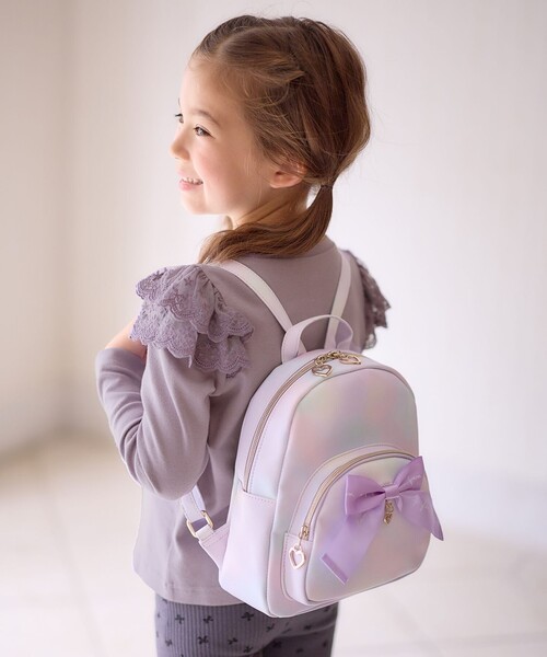 大きめリボンがポイントのキュートなリュックサック POINT ●大きめのリボンがポイント ●ハートのチャームでかわいさアップ! ●マチも広くて使いやすい ■デザイン 大きめのリボンがポイントの、リュックサック。合皮素材で、大人っぽく見せてくれます。ハートのチャームや、ファスナー部分もハート型でかわいささらにアップ!マチも広く、手前にポケットもついているので荷物を入れやすいところが嬉しいポイント。スタイリングを華やかにしてくれるレインボー(#882)、どんなコーディネートにも合わせやすいブラック(#005)、爽やかな印象のサックスブルー(#073)の3色展開です。 ※モデル着用画像はサンプルを使用している為、実際にお届けする商品と仕様、加工、サイズが若干異なる場合がございます。予めご了承ください。 ※掲載画像はご利用いただくPCやスマホの画面環境の都合上、実際の商品と色合いが異なって見える場合がございます。 ★《お気に入り登録》でお得な情報がいっぱい★・「商品のお気に入り登録」で再入荷通知や、セール通知も受け取ることができます。 ・「ブランドのお気に入り登録」で新商品や再入荷など、お得な情報を受け取ることができます! キッズ/リュックサック/ハート/リボン/かわいい/ギフト/お出かけ/人気/デイリー/女の子/ガール